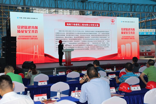 為了進一步加強黨建聯系點的溝通交流,繼續深入推進黨建聯創共建工作,鞏固抓黨建促工程質量安全水平提升的成效。9月25日上午,2020年海南省建設工程黨建聯建共創暨質量安全觀摩交流會在南光·西海灣項目部舉行。省住建廳機關黨委專職副書記劉志偉、省質安局陳雷書記、省質安局副局長劉長征、市質安站站長符志明及各黨建聯創共建企業黨支部、新聞媒體等單位參加了此次活動。海南萬泰公司黨支部作為省住建系統黨建聯系點參加了會議,并做了黨建工作經驗交流發言。