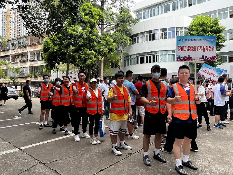 四月芳菲盡,五月花盛開。為深入落實省住建廳《關于舉辦“慶五一”五繩拔河比賽活動的通知》,豐富公司職工業余文化生活,提高身體素質,5月15日上午,海南萬泰建筑工程有限公司黨支部、工會組織員工參加了由省住建廳主辦的“慶五一”五繩拔河比賽。省住建廳副廳長陳孝京、省建設工會專職副主席劉志偉、機關黨委專職副書記莫百超,廳相關處室、直屬單位及部分基層工會有關人員參加了本次比賽活動。萬泰公司對本次活動非常重視,派出了由王斌、王威、張豪杰、張樂開、林溪婷、孫彤、張會嶺組成的男女拔河隊,韓文劍副總親自率隊組成啦啦隊全程加油助威。