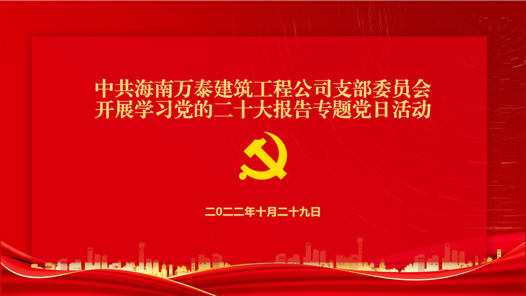 金秋十月,山河錦繡。為深入學習貫徹黨的二十大報告,領悟會議精神,堅定理想信念,2022年10月29日,海南萬泰公司聯合金貿街道商會組織開展學習黨的二十大報告專題黨日活動。