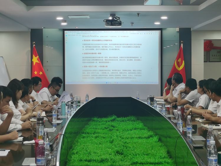 公司常務副總顏利表示學習宣傳貫徹黨的二十大精神要與推動企業高質量發展有機結合,真正使學習的過程成為統一思想、提高認識、研究問題、推動工作的過程。學習二十大報告將是萬泰當前和今后一個時期的首要政治任務,并號召廣大黨員職工一定要學深悟透會議精神實質,統籌好發展和安全,從嚴抓緊抓好安全生產、質量環保等工作,著力推動海南萬泰公司高質量發展,在海南自貿港建設中貢獻萬泰力量。