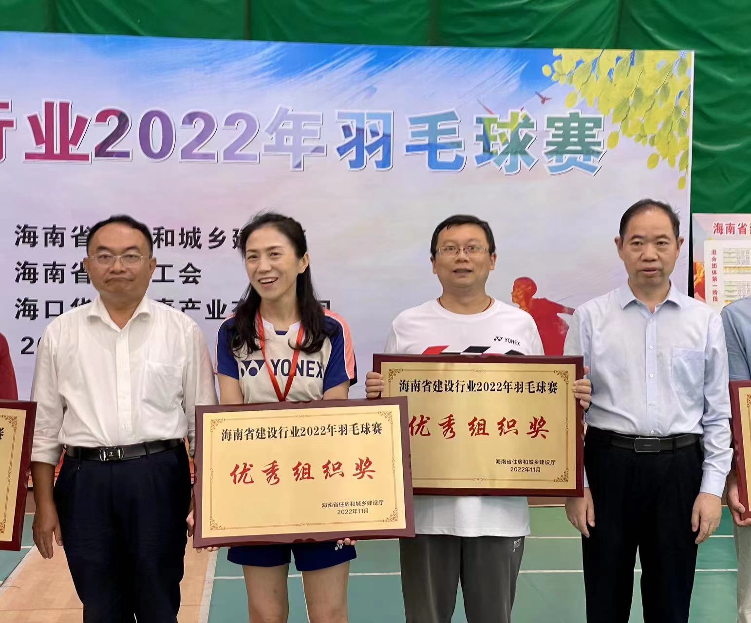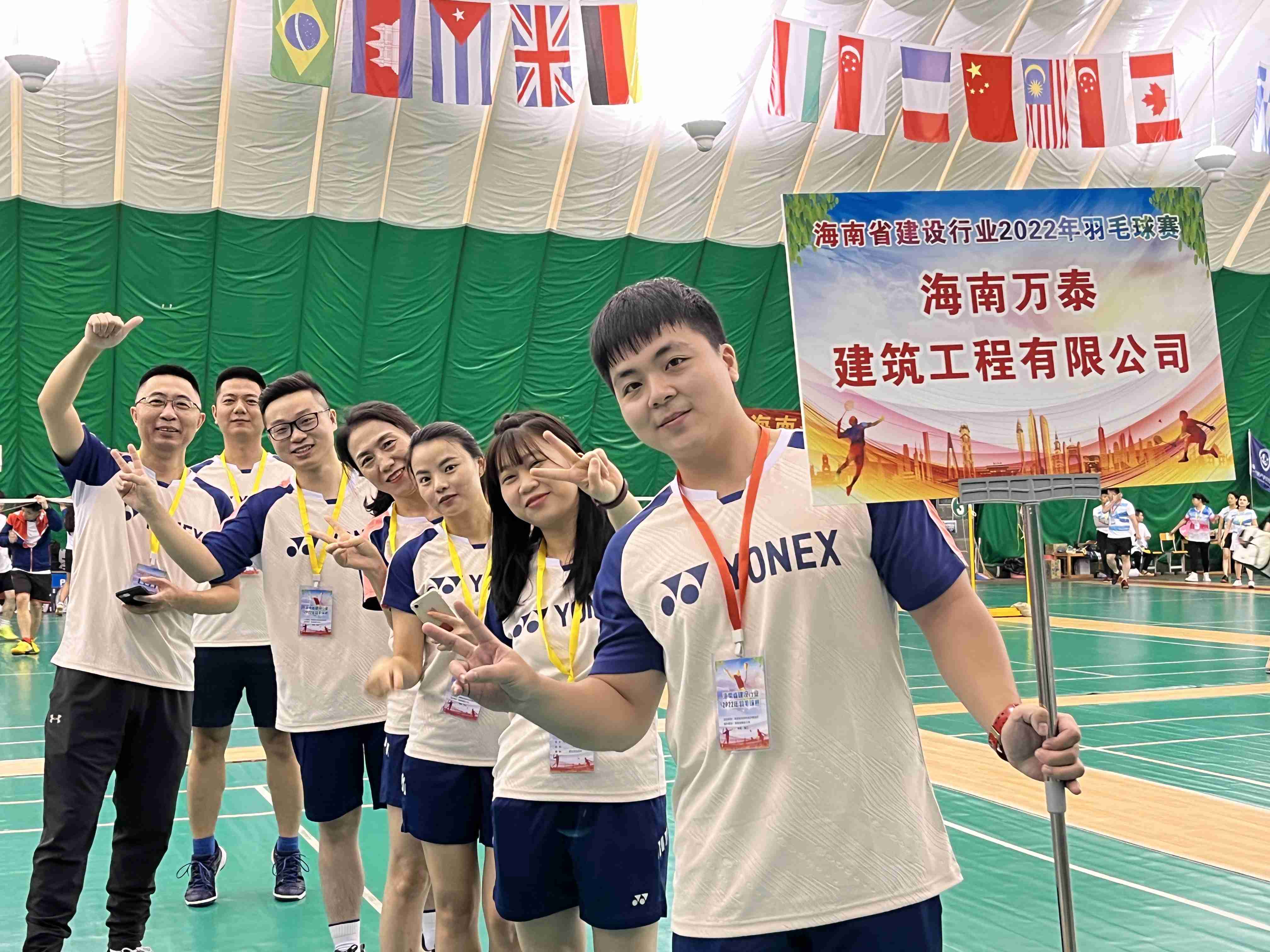 為豐富職工業余文化生活,提高職工身體素質,2022年11月19日至20日,海南萬泰公司組織參加了由海南省住建廳主辦、海南省建設工會承辦的海南省建設行業2022年羽毛球比賽,來自政府部門、企事業單位共29支參賽隊伍齊聚一堂,角逐榮譽。萬泰公司對本次活動非常重視,派出了由韓文劍、劉峰、張建杰、楊秀娟、吳嫚芳、林慧、張愉勤組成的羽毛球代表隊。