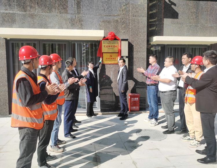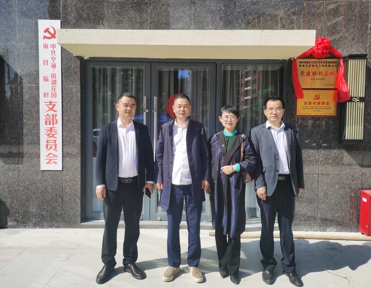 當日上午,海南萬泰公司黨支部、工程部,白沙亨通集團董事長周金華、亨通·南湖花園項目臨時黨支部書記何承中、項目總負責人劉普等有關人員共同為黨建聯(lián)建共創(chuàng)基地進行揭牌。