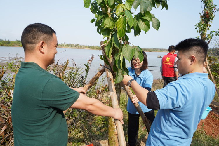活動(dòng)當(dāng)天,艷陽高照,晴空萬里,大家紛紛拿著鐵鍬,拎起水桶,以十足的干勁與熱情積極投入到植樹播種中,挖坑、放苗、扶正、填土、澆水,一氣呵成,全然不顧揮灑的汗水。在大家的分工合作下,一棵棵新栽苗木迎風(fēng)挺立,給初春的大地增添了盎然的生機(jī)和蓬勃的朝氣,形成了一道亮麗的風(fēng)景線。海南萬泰公司黨支部書記曹珊珊及部分黨員紛紛表示,將會(huì)把本次實(shí)踐活動(dòng)的所學(xué)所感融入到今后工作與生活中,不斷提升自我,努力為建設(shè)美麗新海南不斷地添磚加瓦。