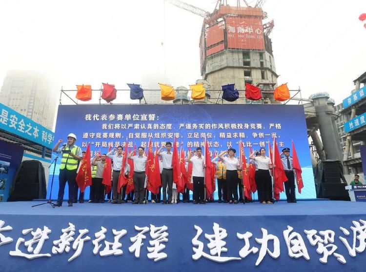 為充分發揮工人階級主力軍作用,積極組織公司職工參與企業發展事業,為海南自貿港建設做貢獻,2023年3月30日,由海南省總工會、海南省住房和城鄉建設廳、海南省營商環境建設廳、海南省公安廳等單位聯合主辦,海南省農林水利交通建設工會、海南省建設工會、中建三局集團有限公司承辦的“奮進新征程、建功自貿港”2023年海南省行業性勞動和技能競賽啟動儀式在海南中心項目工地全面啟動,省總工會主席陸志遠、省住建廳副廳長林詩輝等相關單位領導出席活動。