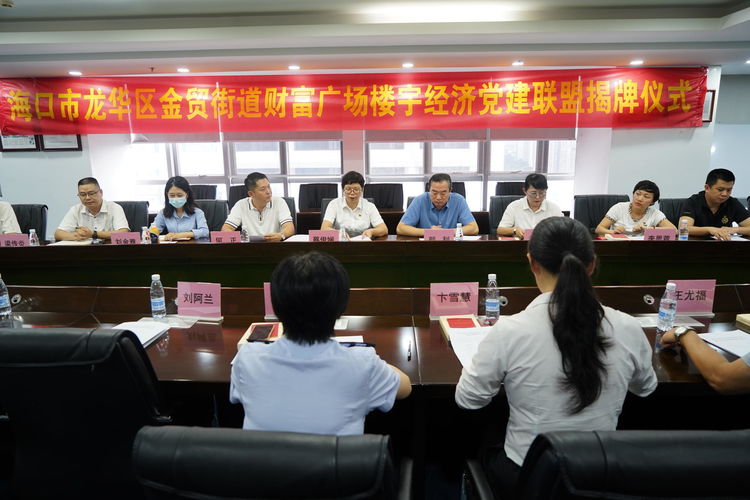海口市龍華區金貿街道財富廣場樓宇經濟黨建聯盟由國家稅務總局海口市龍華區稅務局第一稅務分局黨支部、海南萬泰建筑工程有限公司黨支部、龍華區金貿街道商會黨支部等11個黨組織組成,資源整合、優勢互補、共享優惠政策、共同發展黨建平臺。