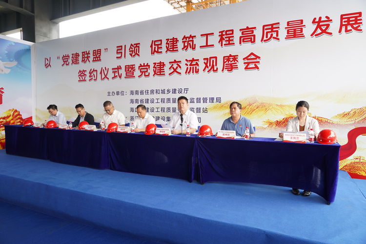 為深入學(xué)習(xí)貫徹習(xí)近平新時(shí)代中國(guó)特色社會(huì)主義思想,深化黨建聯(lián)創(chuàng)共建,推動(dòng)黨建工作進(jìn)一步走深走實(shí),按照省質(zhì)安局的通知要求,近日,海南萬(wàn)泰公司黨支部組織工程部、綜合部等有關(guān)人員在浙江三建江畔濠庭項(xiàng)目參加了海南省建設(shè)工程質(zhì)量安全監(jiān)督管理局黨建聯(lián)盟簽約儀式暨黨建交流觀摩會(huì)。 省質(zhì)安局黨支部書記、局長(zhǎng)蔡和林主持了會(huì)議。