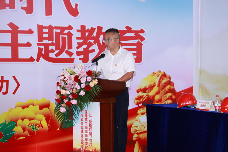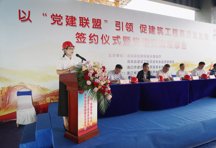 海口市建設(shè)工程質(zhì)量安全監(jiān)督站黨委書記、站長(zhǎng)符志明在講話中表示將以江東片區(qū)“黨建聯(lián)盟”為紐帶,進(jìn)一步做好服務(wù)企業(yè)的各項(xiàng)工作,推動(dòng)工程項(xiàng)目質(zhì)量安全發(fā)展。
