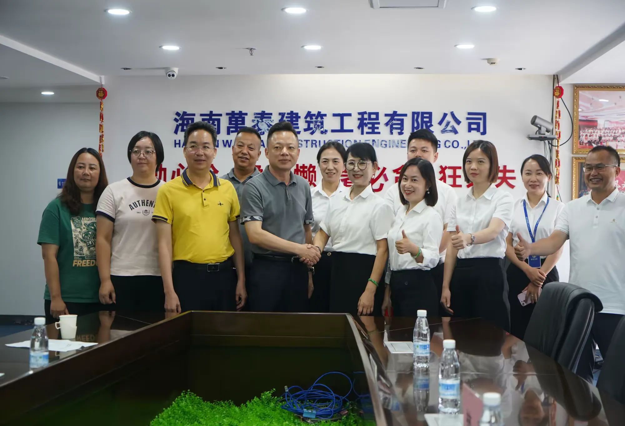 隨后周炳才書記一行觀看了海南萬泰建筑工程有限公司宣傳片。孟書記代表公司對海職院領導一行的走訪交流示以熱烈歡迎,并表示海職院作為海南省第一所獨立設置的公辦高職院校,教資豐富,人才培養水平優越,公司創始人便是來自于海職院的優秀人才,近些年海職院的多個優秀畢業生在萬泰公司不斷成長,為企業發展作出了諸多貢獻。下一步,萬泰公司將進一步深化與海職院的交流學習,在黨建工作、校企合作、學生就業等多方面進行深入合作,達成合作雙贏的共識,為海南自貿港建設做出應有的貢獻。