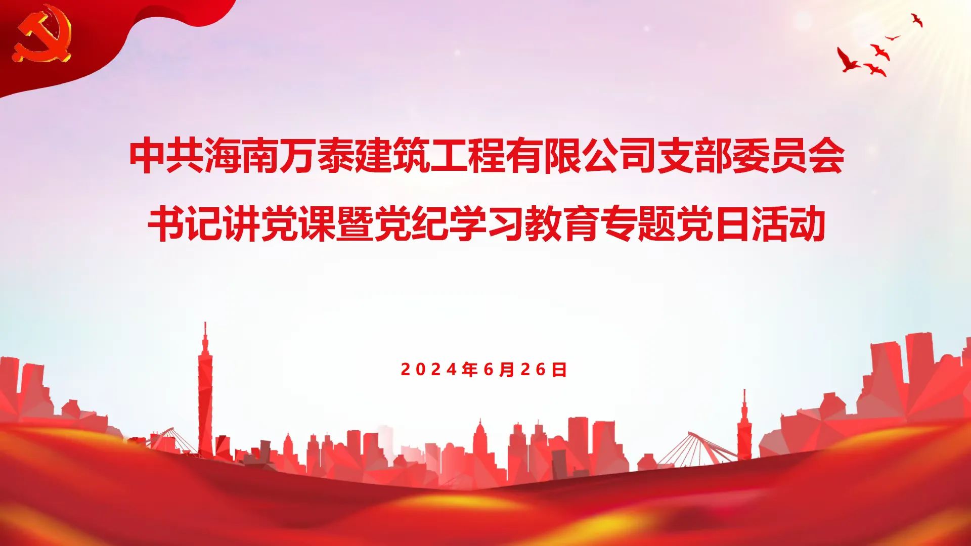 為深入開展好黨紀學習教育工作,按照省住建行業黨委的統一安排,結合公司黨支部黨紀學習教育工作方案,6月26日下午,黨支部組織黨員、積極分子及部分職工召開了書記講黨課暨黨紀學習教育專題黨日活動。