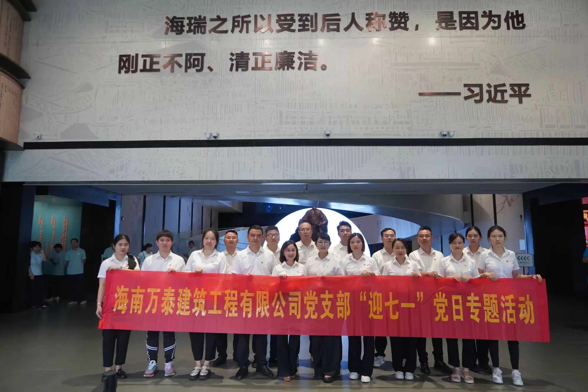 在參觀海瑞歷史文化展覽館的過程中,大家通過聆聽講解、觀摩實物及生平復原場景等形式,全面了解了海瑞的生平事跡和為官之道。海瑞的清廉正直、為民請命的精神深深打動了在場的每一個人。在場的人紛紛表示,要以海瑞為榜樣,時刻保持清醒的頭腦,堅守廉潔自律的底線,做到公私分明、清正廉潔。隨后全體人員還進行了入黨宣誓,在錚錚誓言中表達堅定不移聽黨話、跟黨走,為共產主義奮斗終身的信念和決心。